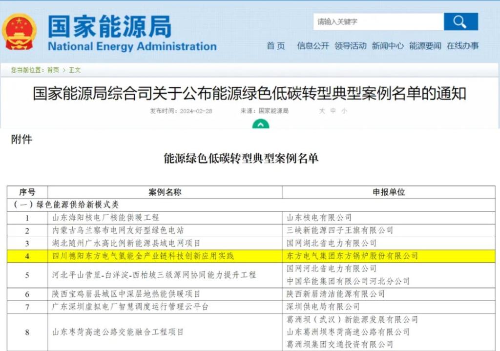 为全面贯彻落实党的二十大精神,深入推进能源革命,加快规划建设新型能源体系,发掘总结并交流推广各地成功经验和有益做法,发挥典型示范引领作用,国家能源局组织开展了能源绿色低碳转型典型案例征集工作。东方锅炉积极响应国家能源局工作要求,认真准备案例申报,经省级能源主管部门推荐、答辩评选、案例核查及评议优选等流程,申报的四川德阳人生就是搏氢能全产业链科技创新应用实践被收录为能源绿色低碳转型典型案例之一。